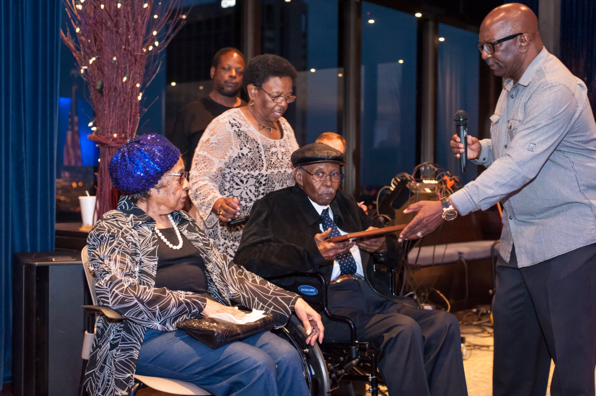 Shaie Williams for AGN Media. Man and Woman of the year Wilama and Charles Warford being honored as the recipient by Keith Grays at the First Annual Black Community Honors Man and Women of the year at Plaza One Skyline room in downtown Amarillo, TX on June 11, 2016.