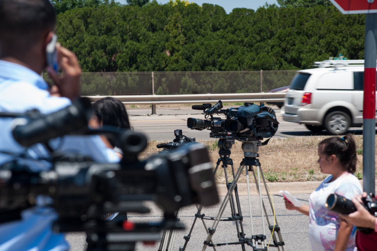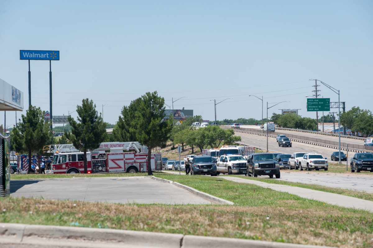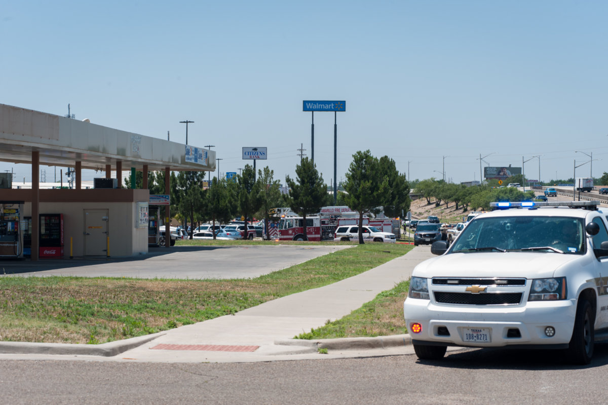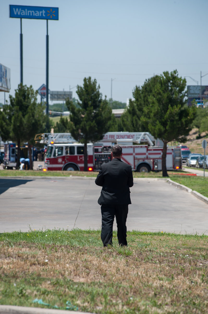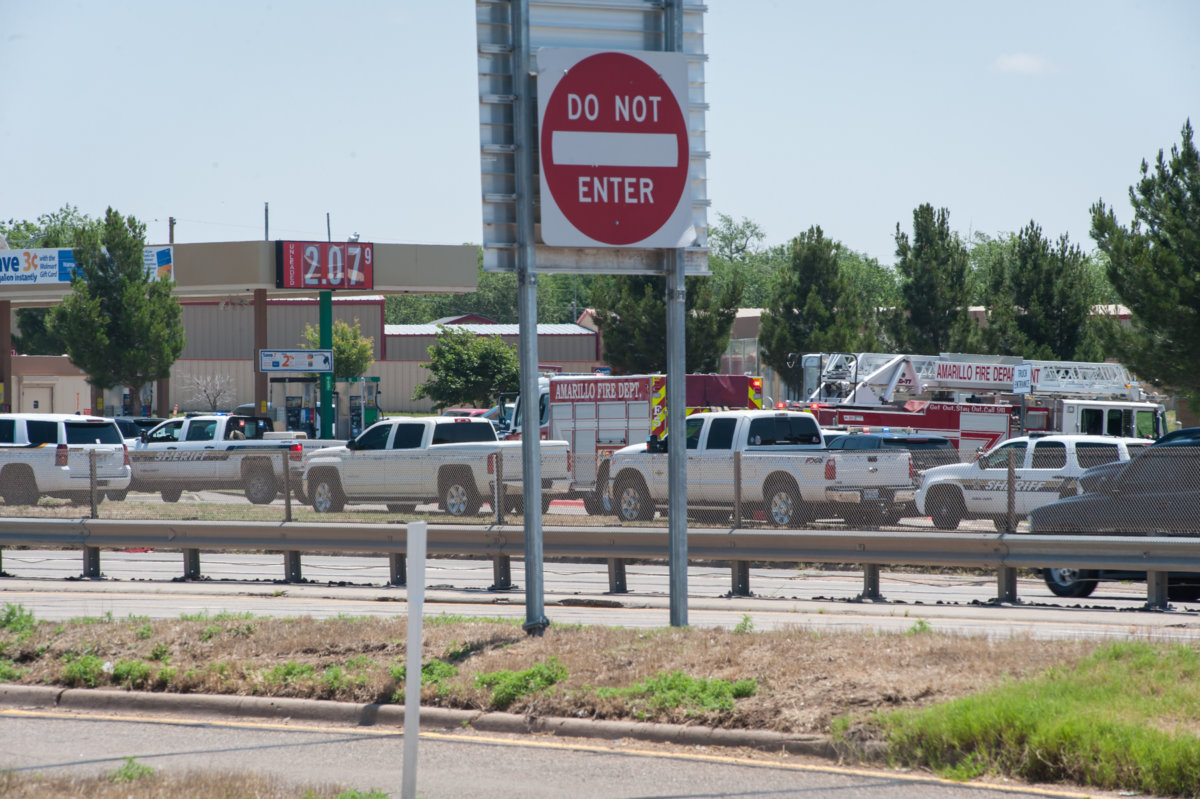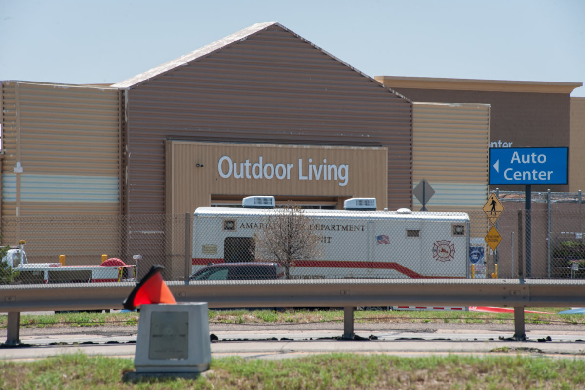 Shaie Williams freelance photographer . Man with gun takes his boss hostage after firing a shot in Walmart located at Interstate 27 and Georgia Amarillo, TX on June 14, 2016. shooter was shot and killed during the standoff with local law enforcement. No hostages were harmed. Police officers found holster and ammunition in his vehicle along with Arabic writings.