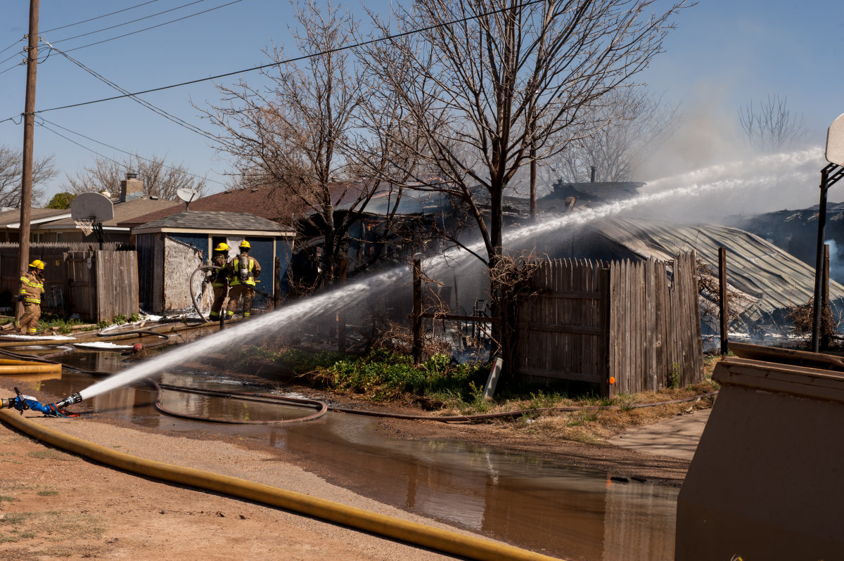 Shaie Williams for AGN Media. Amarillo Fire Department fights structure fire with winds in excess of 40 mph at 2908 S Detroit St in Amarillo, TX on March 23, 2016.